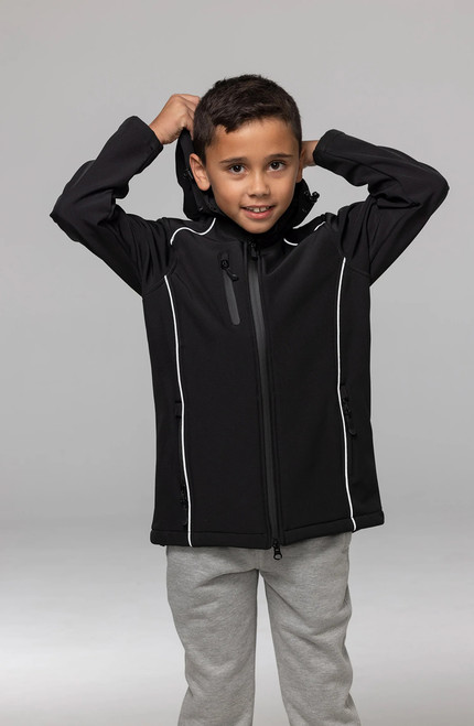 • Self fabric concealed hood with 100% polyester velour lining